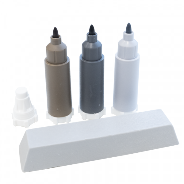 Een kleurenstiftenset bestaat uit een 3-delige bijwerkstift en een stopwas staafje op kleur. Kleine beschadigingen kunnen met stopwas worden opgevuld. Met de stift kunnen krasjes en kleine beschadigingen worden ingekleurd. Geen permanent herstel, maar slechts om te maskeren.