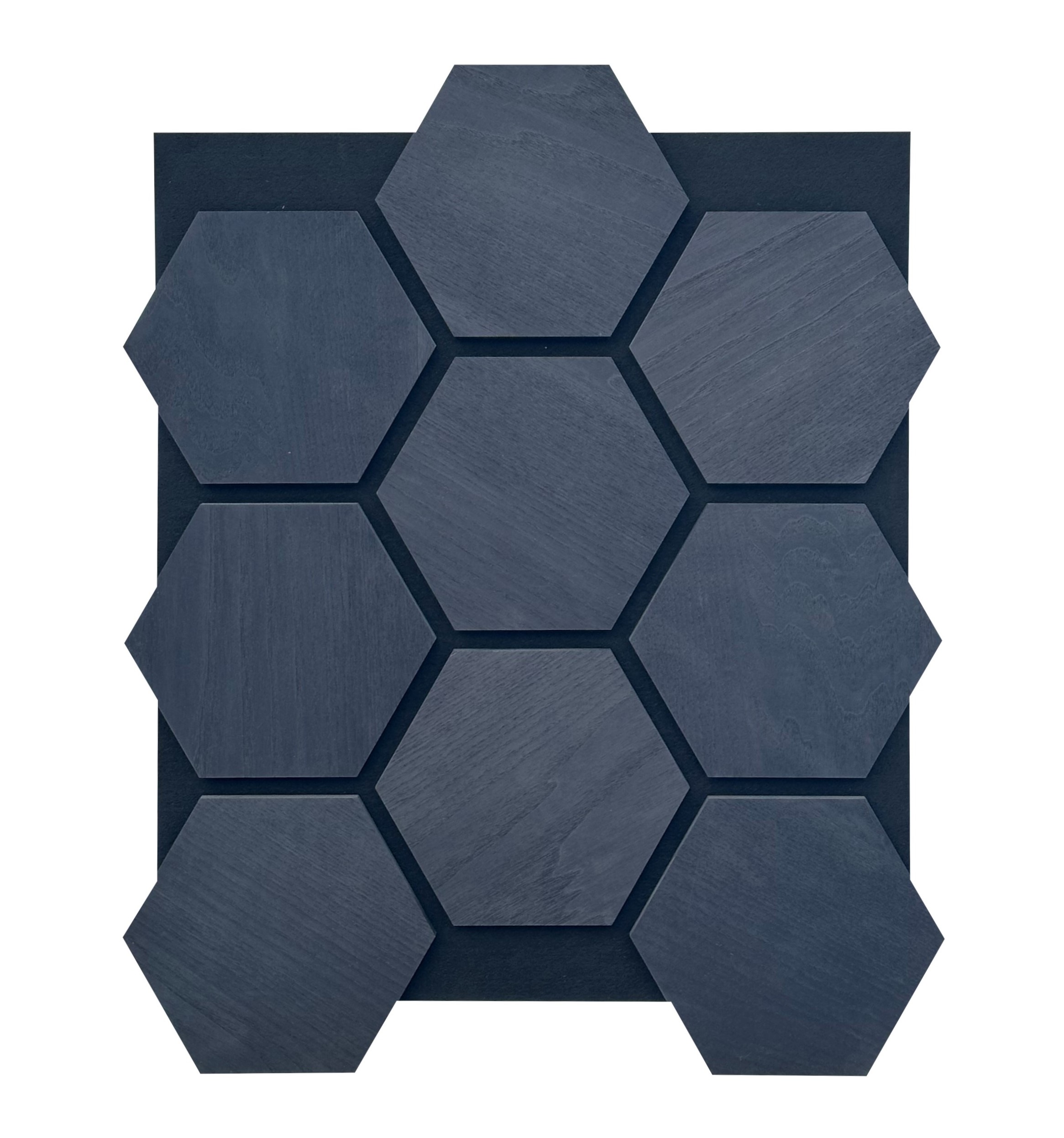 De hexagon wandpanelen hebben een breedte van 62 cm en een lengte van 76 cm. Dikte is 2,2 cm en de naadgrootte is 1,5 cm.